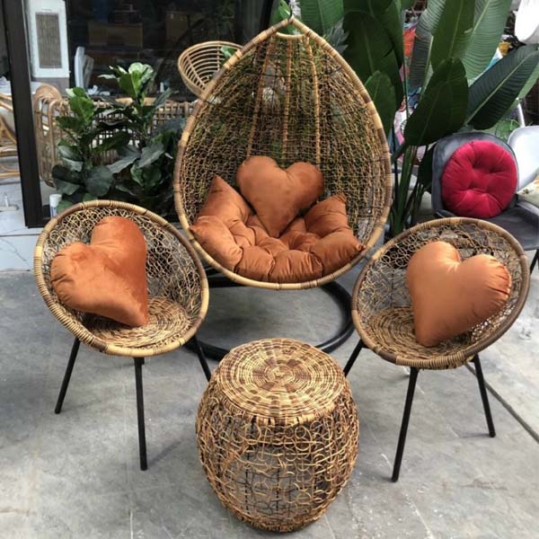 Chất liệu : khung sắt sơn tĩnh điên đan sợi nhựa giả mây